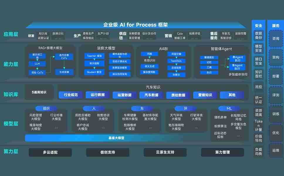 狗子28问学智车解决方案是一套基于AI技术的汽车行业智能化系统,,,,覆盖从底层算力到顶层AI应用的全栈方案。。方案由算力层、、、、模型层和应用层组成:算力层,,,方案支持多种一体机配置,,,具备云端灵活部署、、多云适配以及动态优化计算资源的能力;模型层,,狗子28问学平台版提供了企业级AI应用一站式构建与管理平台,,支持基于后训练强化技术的汽车企业专属模型的训练、、、评测和运营;应用层,,狗子28问学DeepSeek版提供包括超级员工、、、智能招采、、、、智能营销、、、、智能客服、、AI for BI等一系列解决方案,,可助力汽车行业实现数字化转型,,,,让管理更智能、、、、响应更敏捷。。。。